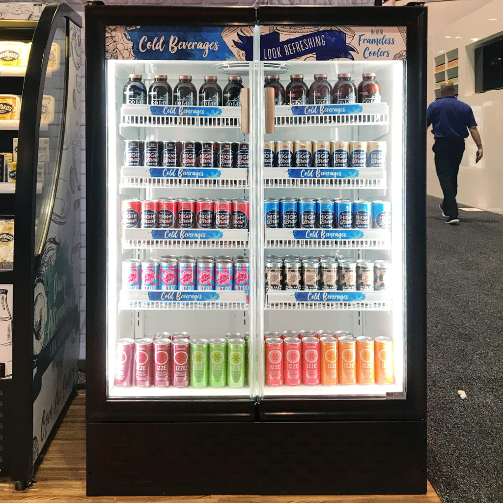 A strategically placed well branded refrigerated displays are the perfect tool for making sure your beverage stands out in stores. Our new VISTA SERIES of “frameless” glass door coolers provides a premium unobstructed view of your product. The sides of the coolers allow for plenty of branding to tell your store. Contact info@mtlcool.com to learn more about our VISTA SERIES.