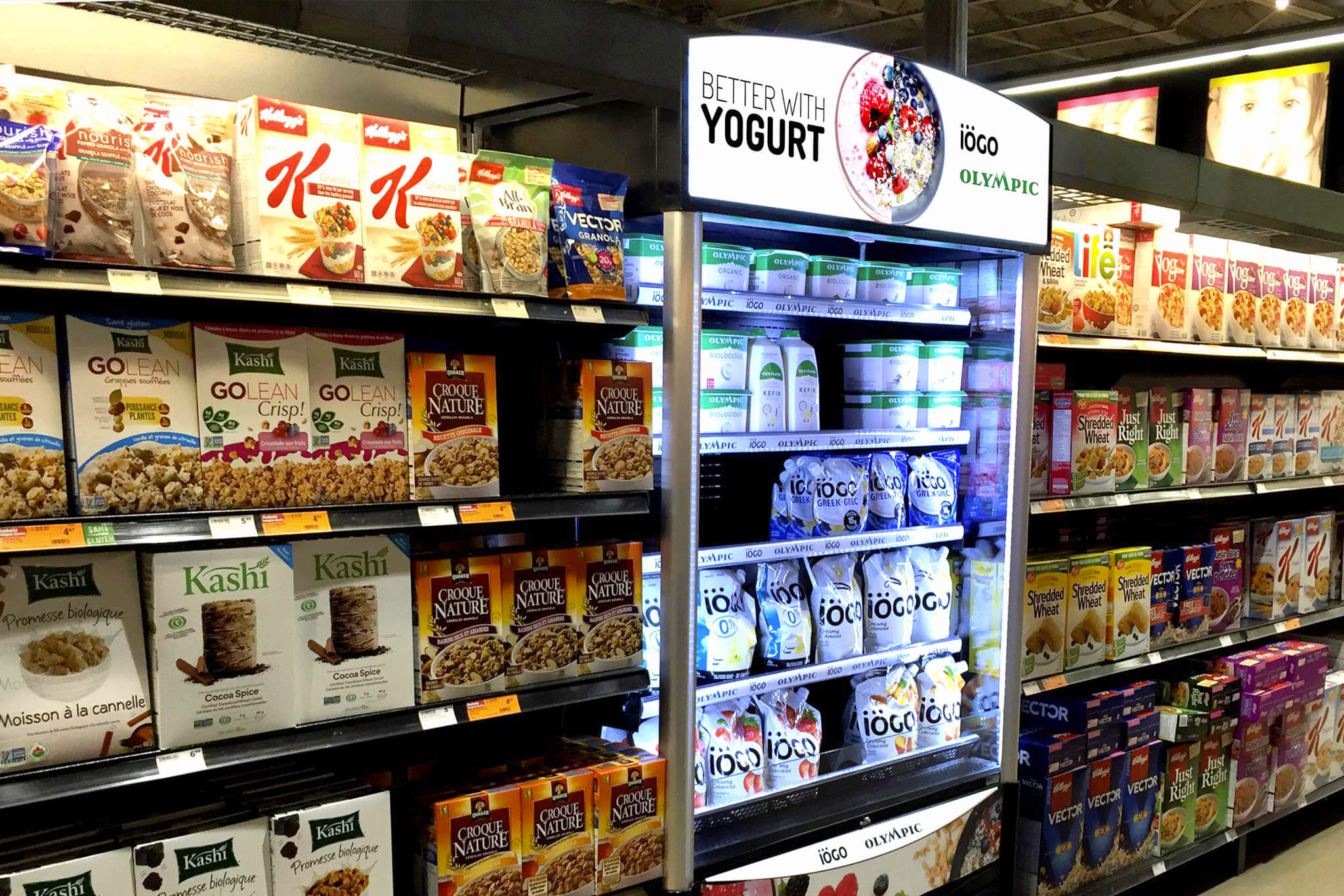 Two multi-national yogurt brands wanted to showcase their products in the cereal aisle, with the aim of inspiring customers to combine the two foods for a healthy breakfast.